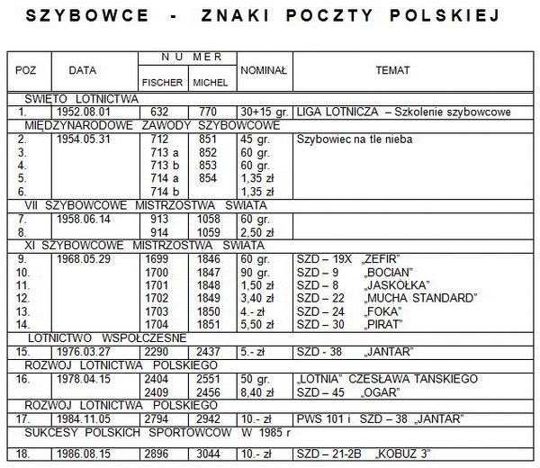 SZYBOWCE NA ZNAKACH POCZTY POLSKIEJ